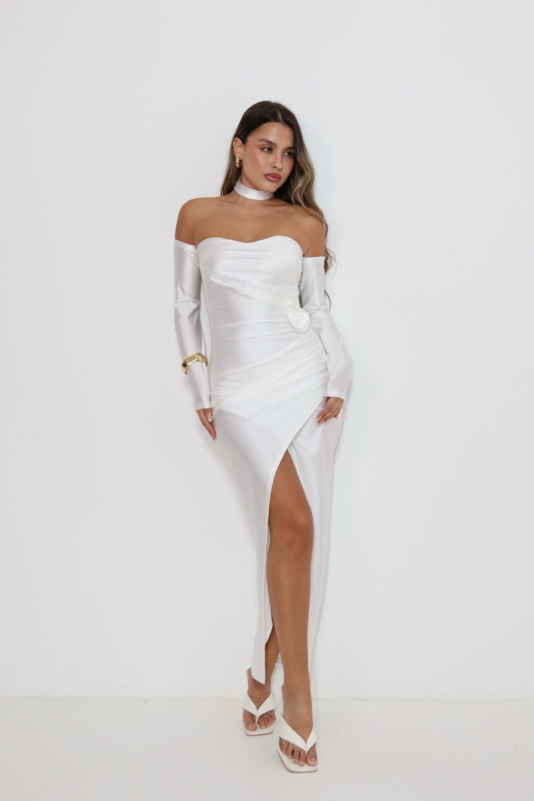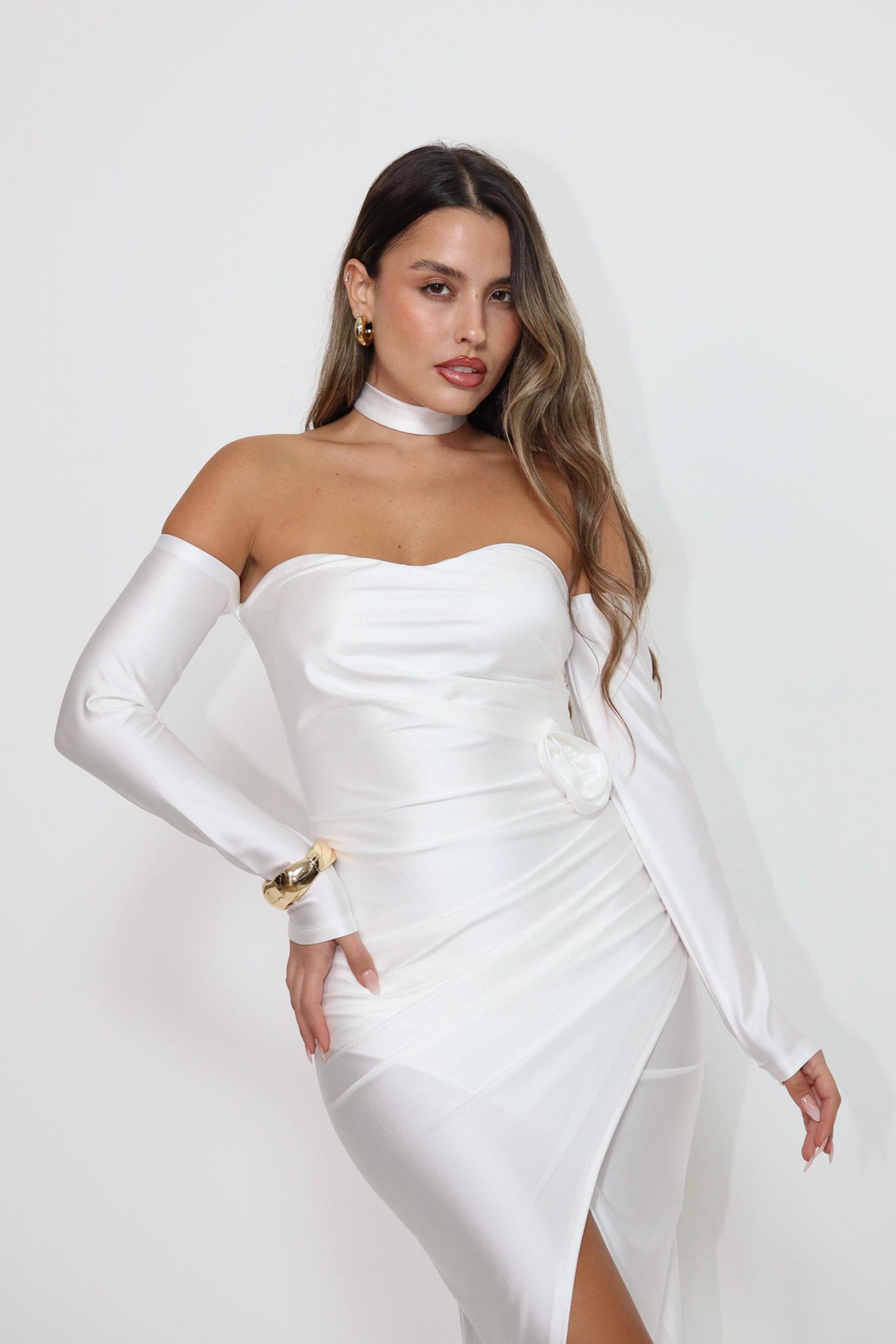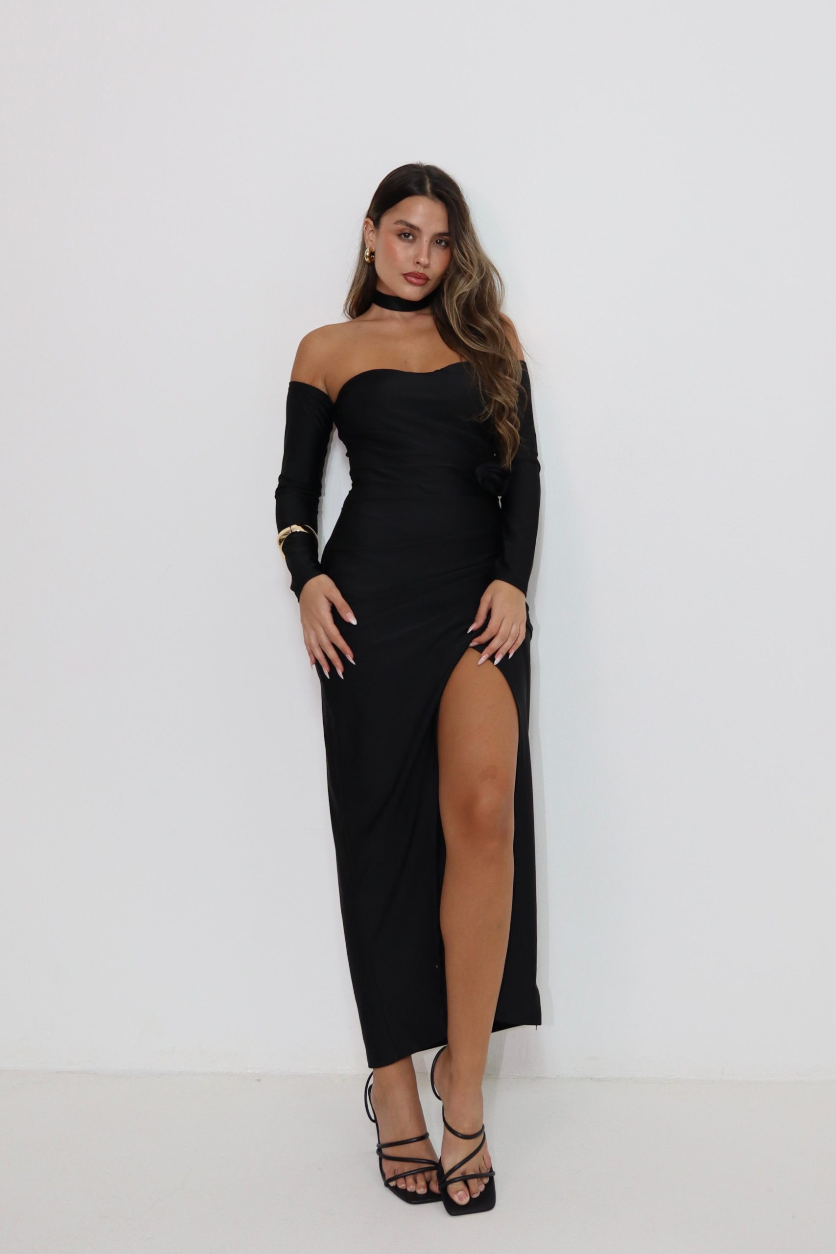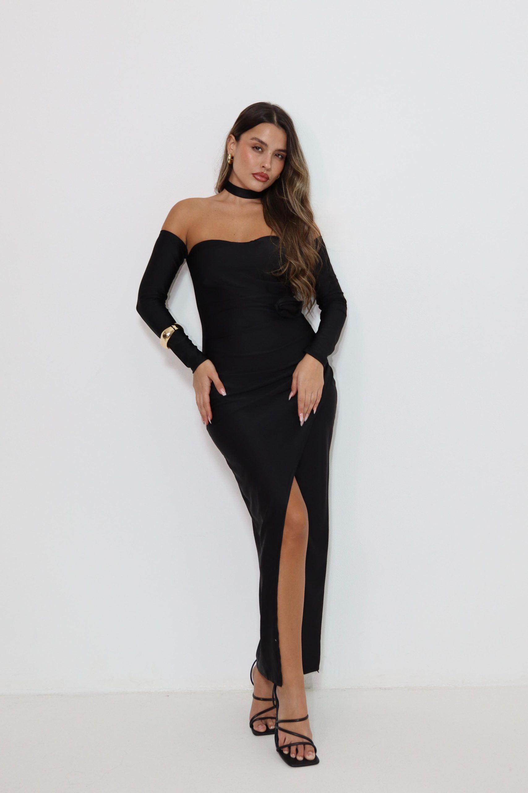 שמלה מקסי סטרפלס קולר כולל שרוולונים