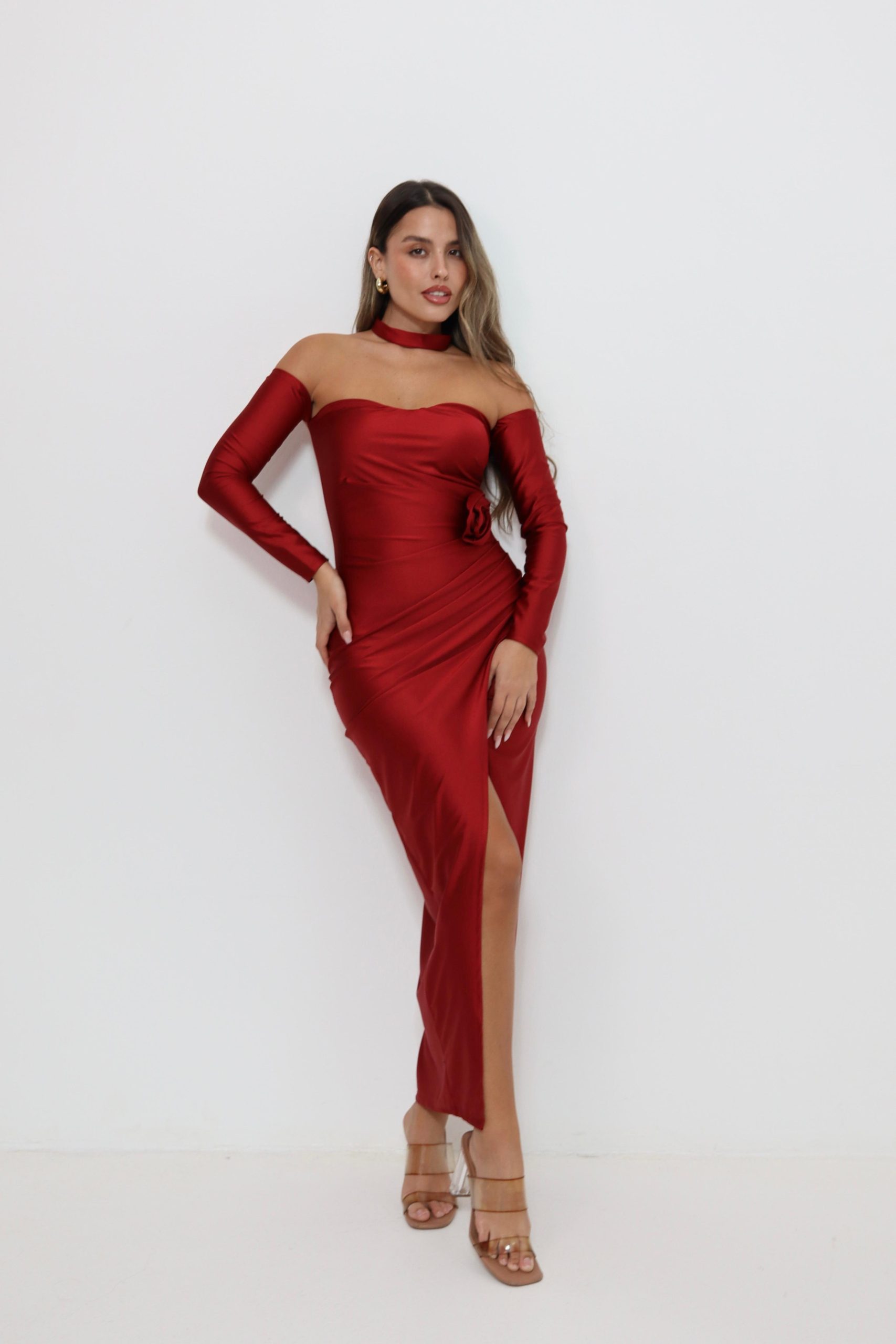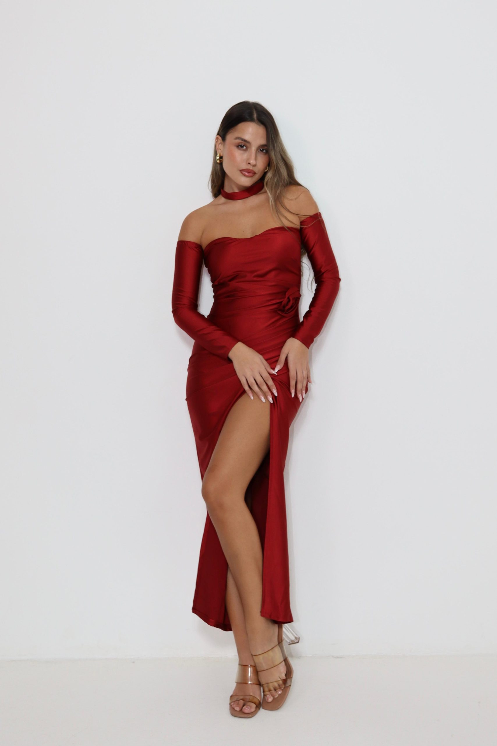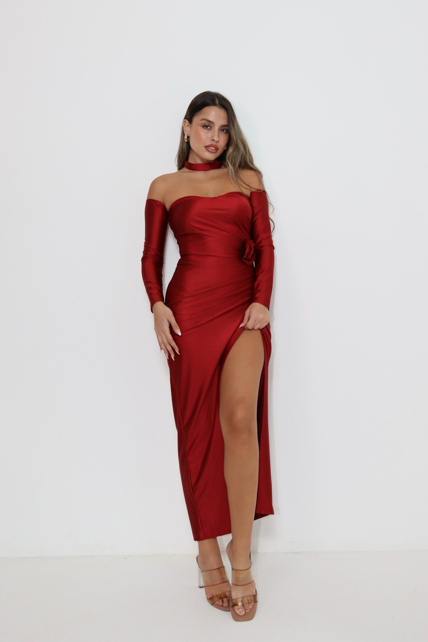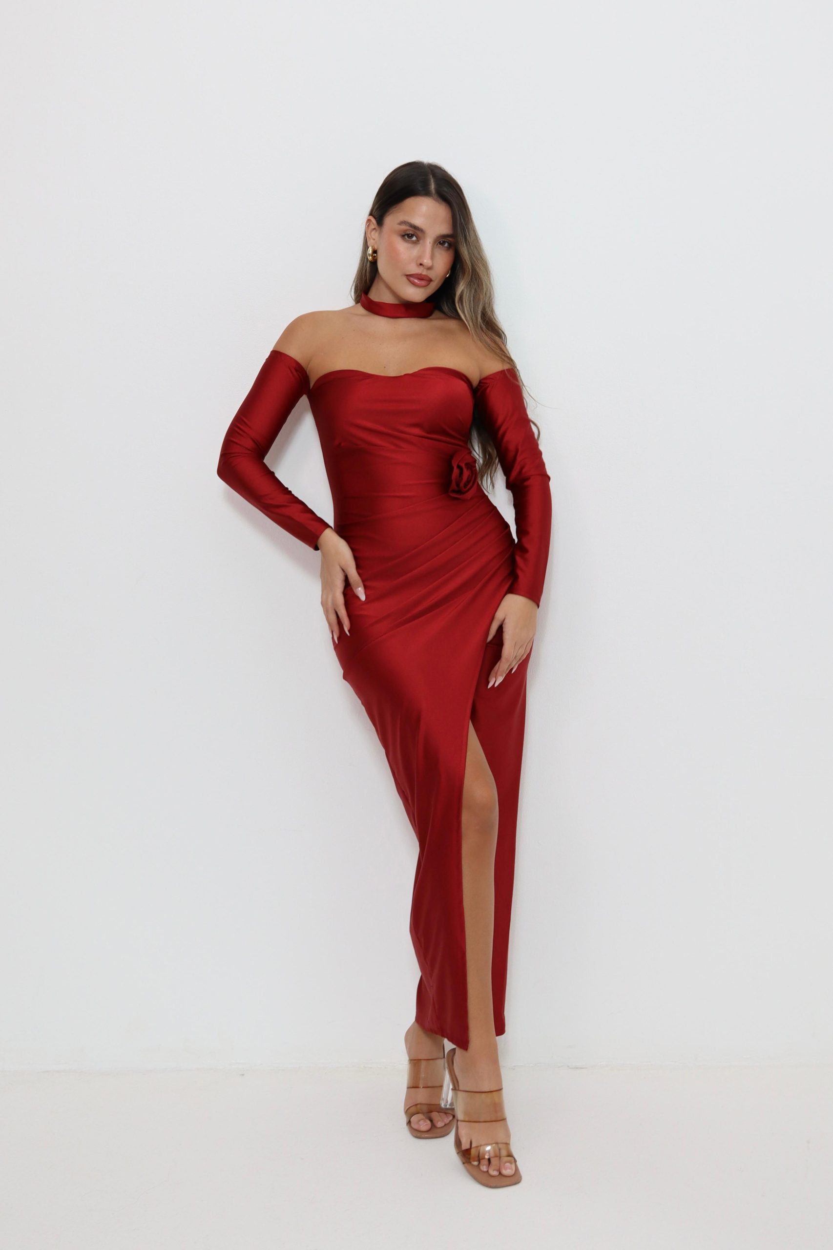 שמלה מקסי סטרפלס קולר כולל שרוולונים