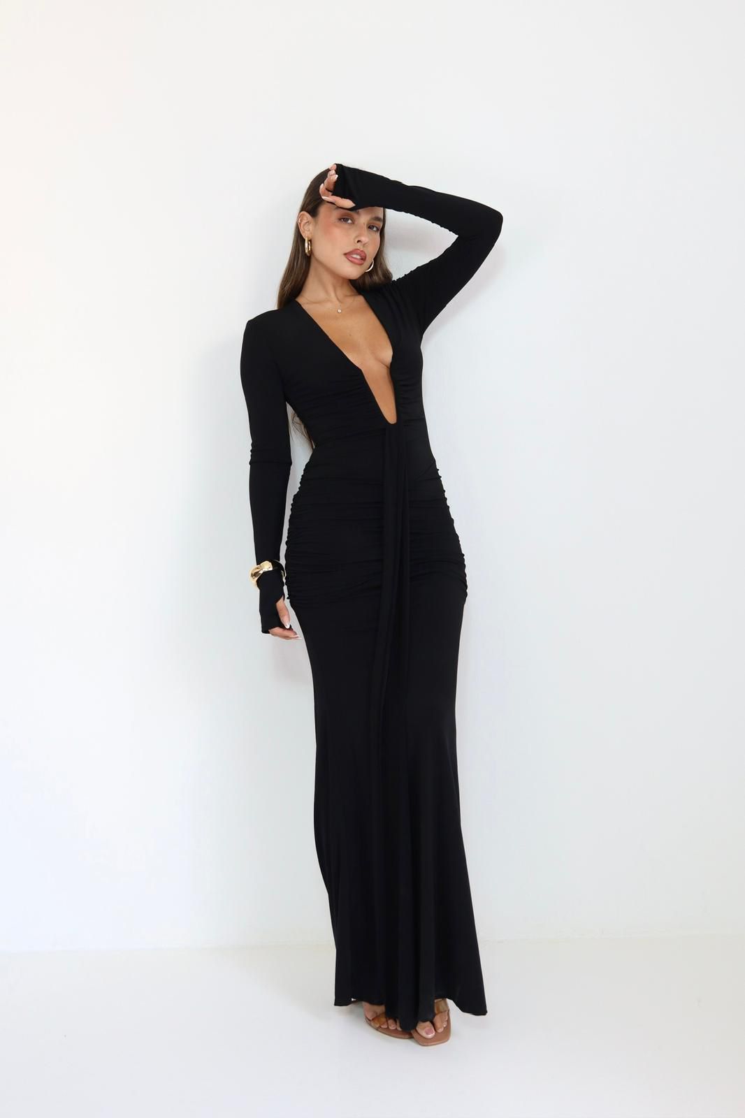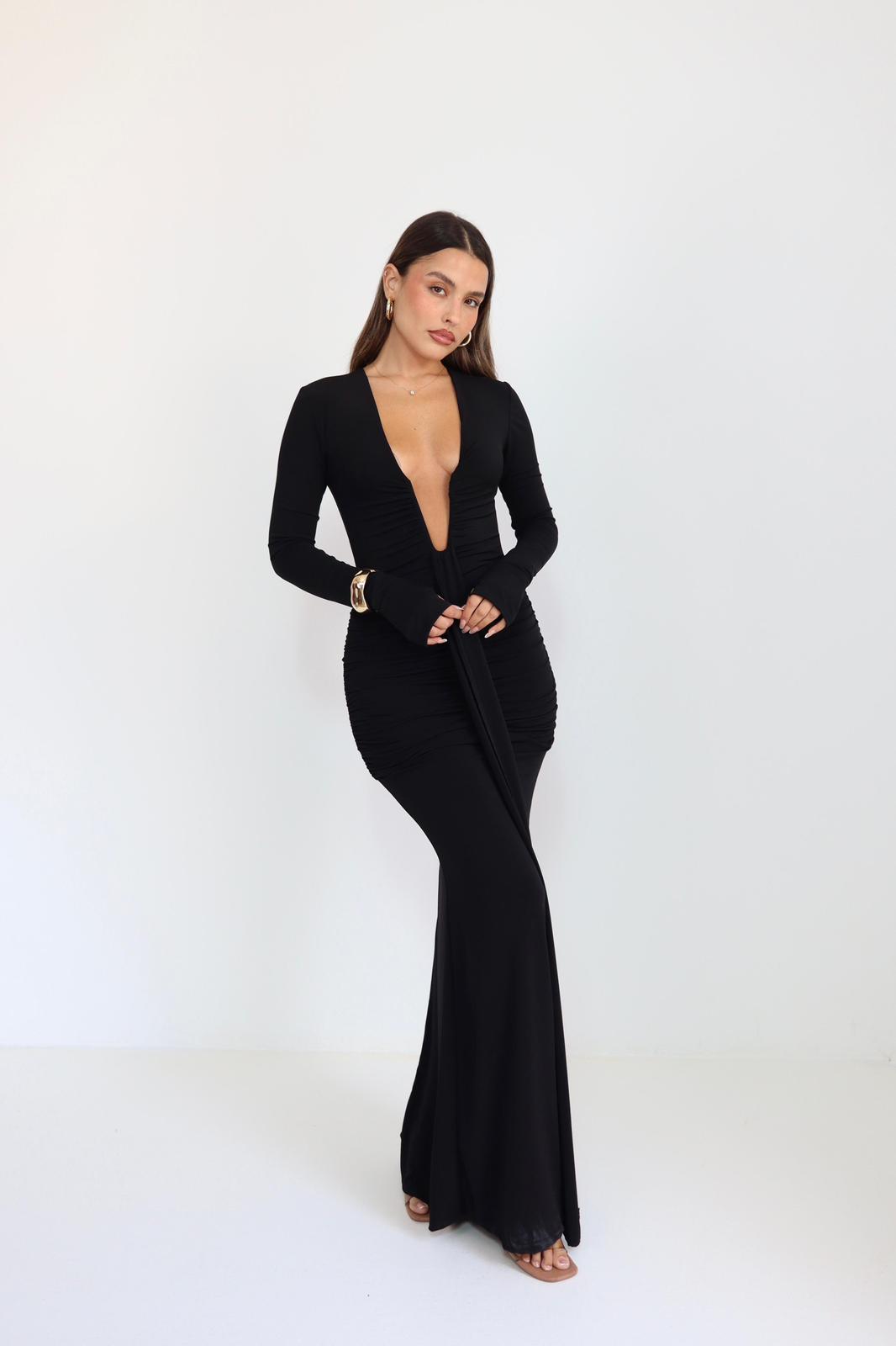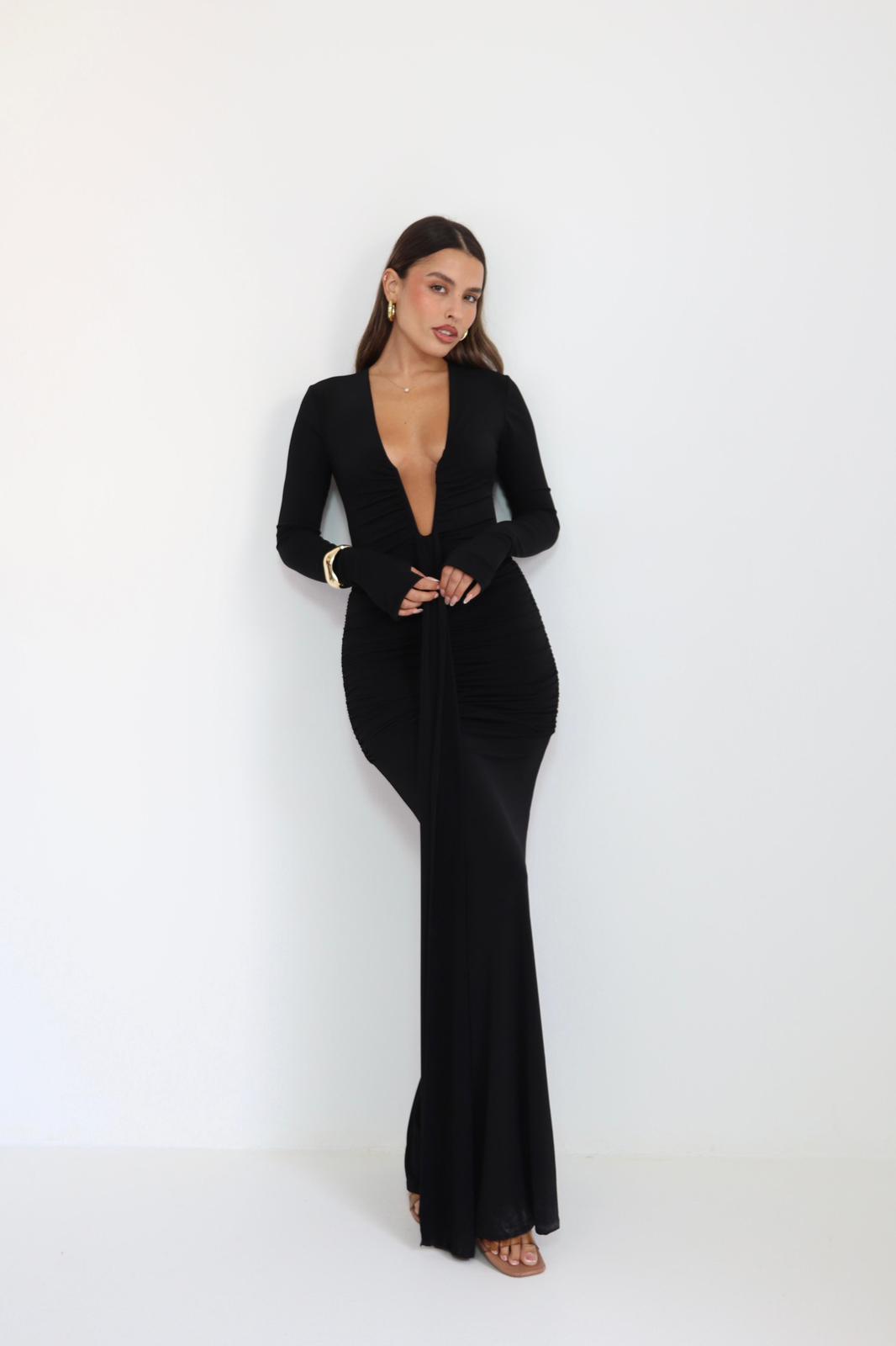 שמלה מקסי מחשוף עניבה עם שרוול כפפה בידיים מידה ONE SIZE יבוא איטליה