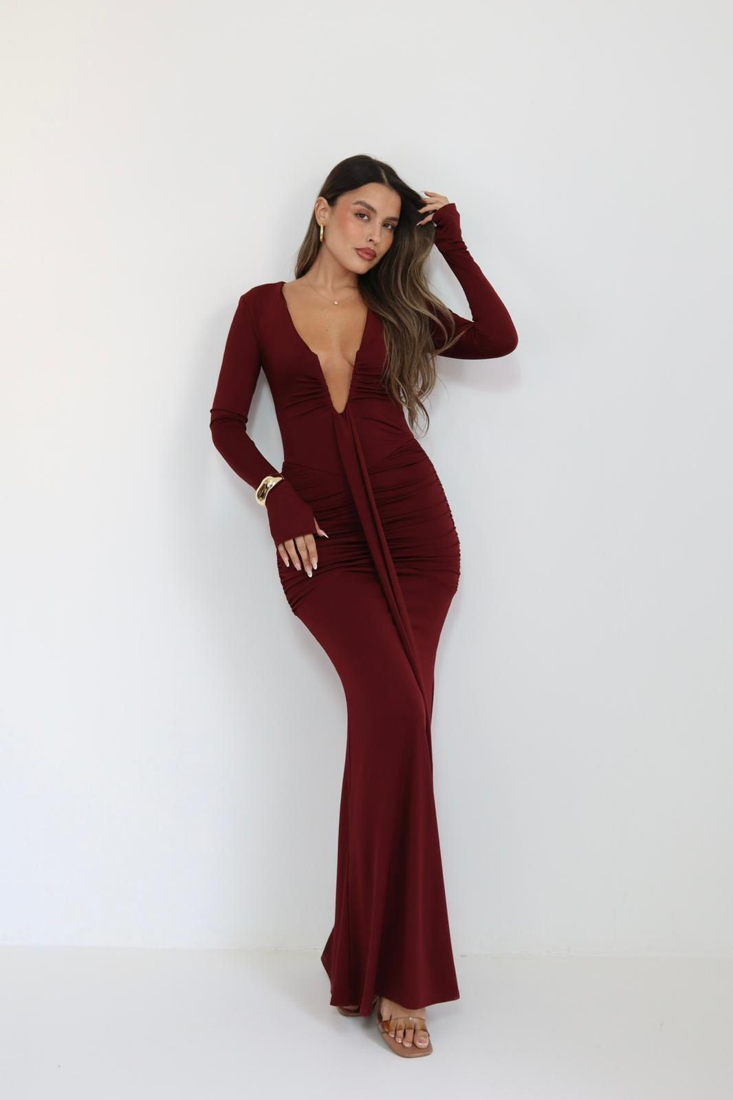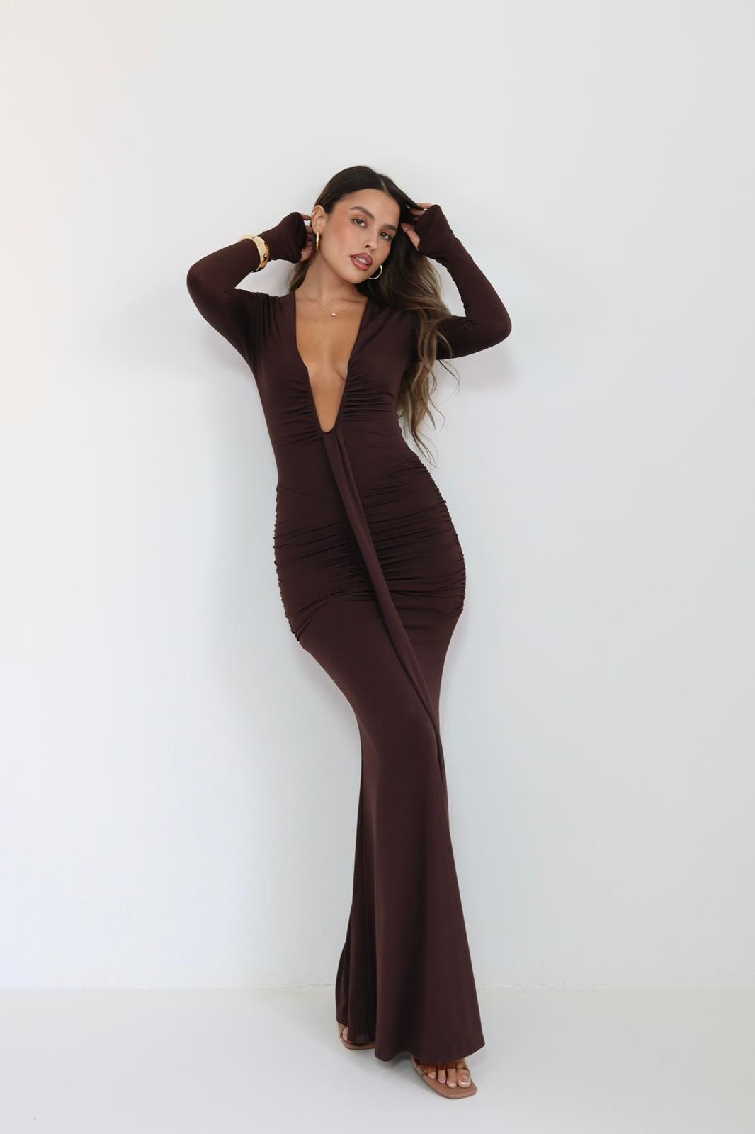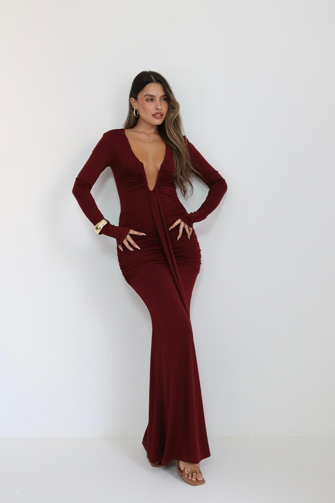 שמלה מקסי מחשוף עניבה עם שרוול כפפה בידיים מידה ONE SIZE יבוא איטליה